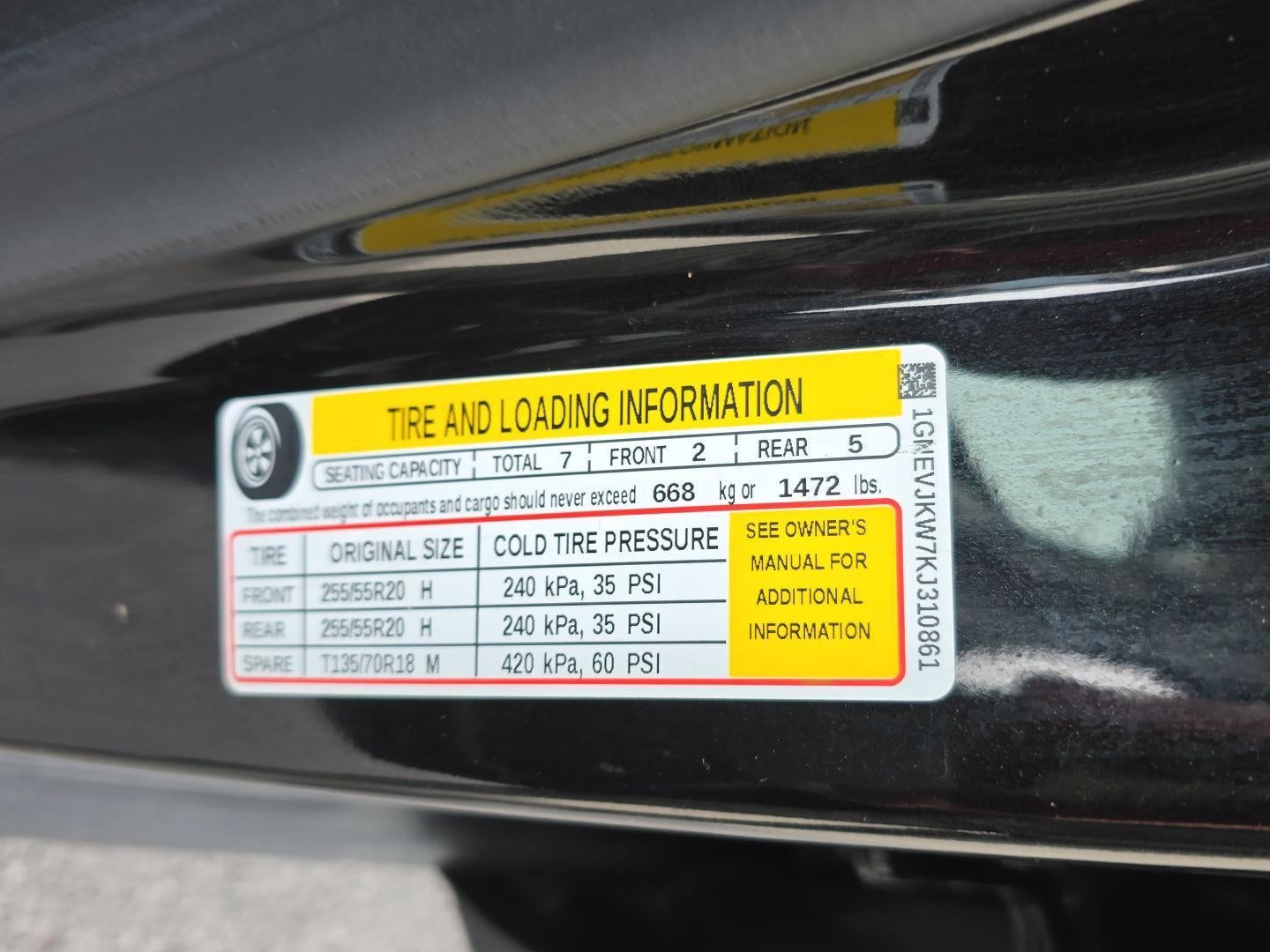 EMISSIONS, FEDERAL REQUIREMENTS, ENGINE, 3.6L V6, SIDI, VVT, TRANSMISSION, 9-SPEED AUTOMATIC, MOSAIC BLACK METALLIC, SEATS, FRONT BUCKET, JET BLACK, LEATHER-APPOINTED SEAT TRIM, AUDIO SYSTEM, CHEVROLET INFOTAINMENT SYSTEM, LPO, FLOOR LINER PACKAGE, COOLING SYSTEM, HEAVY-DUTY, TRAILERING EQUIPMENT, LPO, WHEEL LOCKS, SUNROOF, DUAL SKYSCAPE 2-PANEL POWER, LICENSE PLATE FRONT MOUNTING PACKAGE, LPO, ALL-WEATHER FLOOR LINER, FIRST AND SECOND ROW, LPO, ALL-WEATHER FLOOR LINER, 3RD ROW, LPO, INTEGRATED CARGO LINER