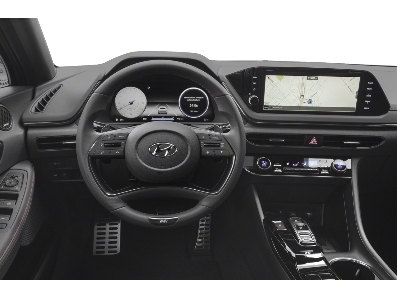 - Radio: AM/FM/MP3/HD/SiriusXM Display Audio w/Nav -inc: 10.25" color touchscreen, Bose premium audio w/12 speakers (1 center channel, 2 dash, 2 front tweeters, 4 door mounted, 2 rear mounted speakers plus 1 rear mounted subwoofer), dynamic voice recognition, integrated Bluetooth®, Blue Link connected car system, Apple CarPlay, Android Auto, USB, diversity antenna for navigation and HERE HD traffic