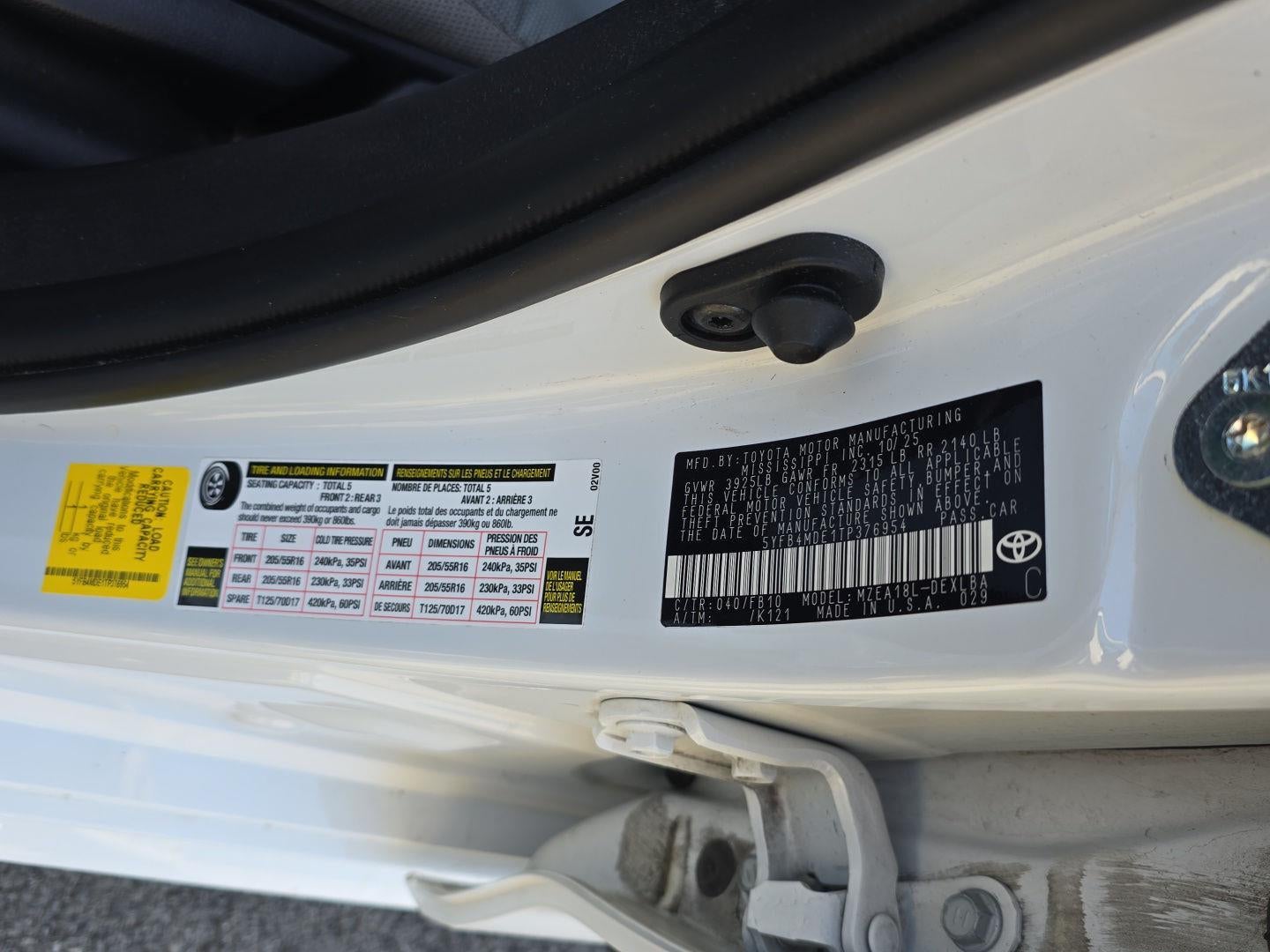 - Vehicle Name: Toyota Corolla